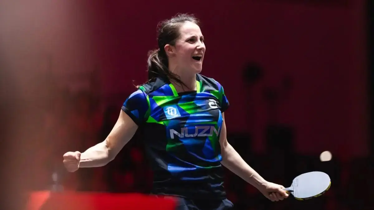 温特:33岁德国选手,世界第11,欧洲一姐。2024年底反手换防弧胶皮,排名从50位外飙升至前十。2026欧洲16强杯3-0胜斯佐科斯夺冠,新加坡大满贯淘汰朱雨玲、王艺迪,创生涯新高。技术上反手防弧胶,吸旋转、回球下沉飘忽,杀手锏是她的正手反胶爆冲,简而言之就是“反手控节奏、正手杀”。
